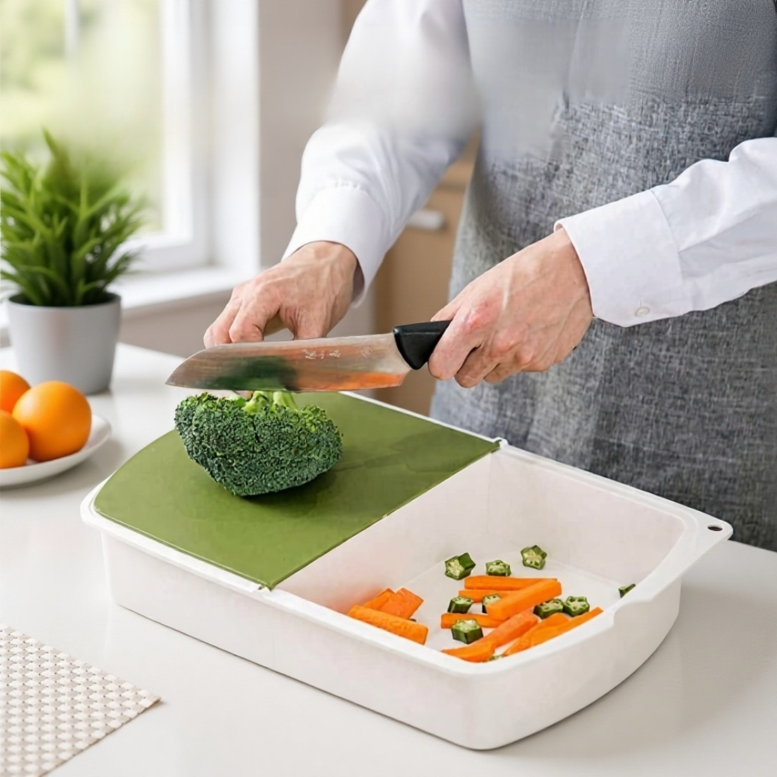 排水バスケット付きフリップトップカッティングボード